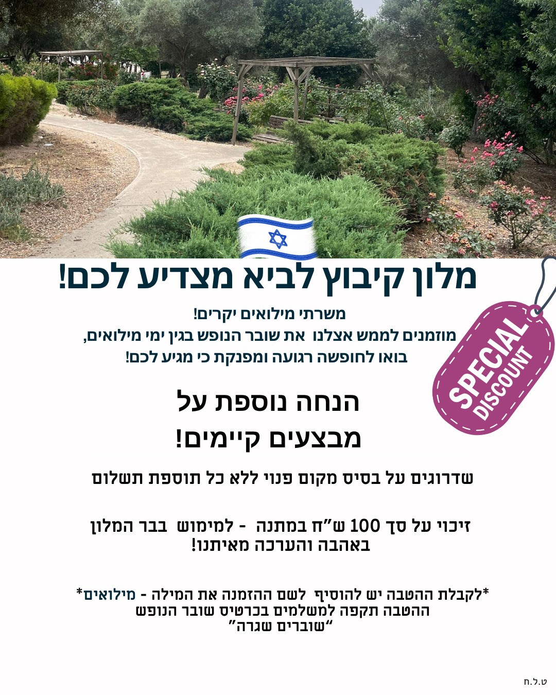 מלון קיבוץ לביא מזמין אתכם להנות מהצעות מיוחדות ומבצעים בלעדיים לאתר הבית שלנו